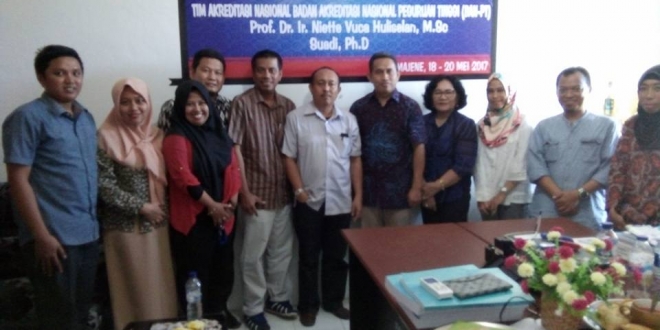 Dalam hal ini BAN-PT kemudian secara resmi menugaskan Asesor untuk melaksanakan asesmen lapangan untuk memverifikasi kesesuaian data Borang Prodi dengan data hasil obeservasi di lapangan yang diwakili oleh Ibu Prof., Dr., Ir., Niette Vuca Huliselan, M.Sc. dari Manajemen Sumberdaya Perairan, Universitas Pattimura (UNPATTI) dan Suadi Junaedi, Ph.D dari Manajemen Sumberdaya Perairan, Universitas Gajahmada (UGM).