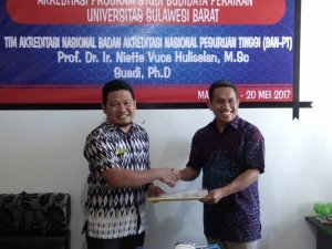 Ketua Program Studi Budidaya Perairan dalam hal ini Muhammad Syukri S.Kel., M.Si menyampaikan bahwa akreditasi merupakan bagian penting yangtentunya dapat meningkatkan mutu pengelolaan akademik di Universitas Sulawesi Barat khususnya pada program studi budidaya perairan sehingga dengan akreditasi yang semakin membaik,