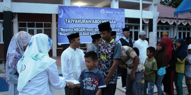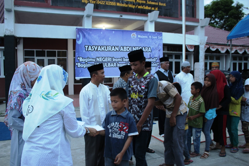 Pada acara tersebut, para anak yatim piatu penghuni panti asuhan Halimattussyadiyah Majene juga mendapat santunan dari para PNS Unsulbar angkatan 2017.
