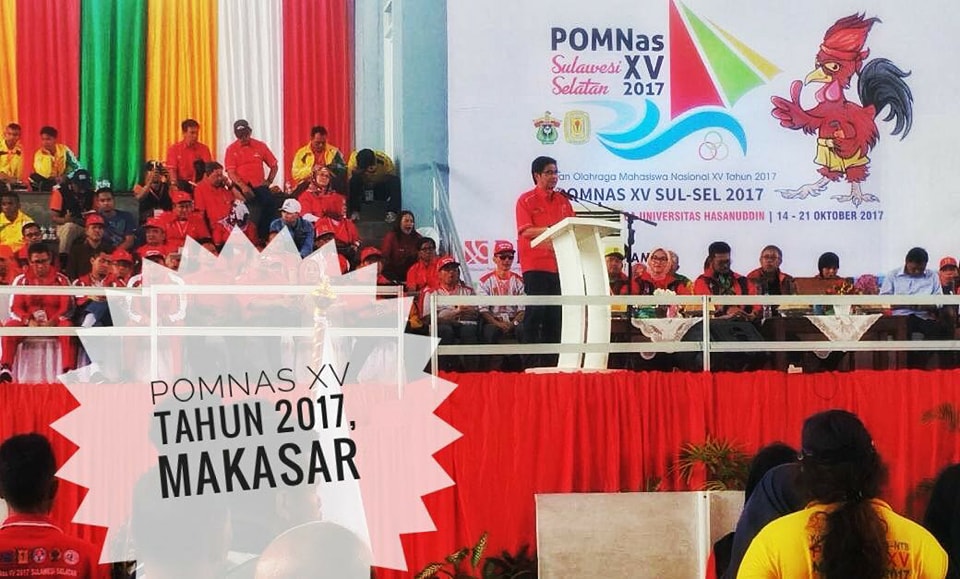 POMNas XV tahun 2017 yang dibuka 14 Oktober 2017 di GOR Unhas diikuti 2.645 atlet serta 1.096 official dari 33 kontingen provinsi,  provinsi Sulawesi Barat satu – satunya yang tidak mengirimkan kontingen mahasiswanya di even tersebut.