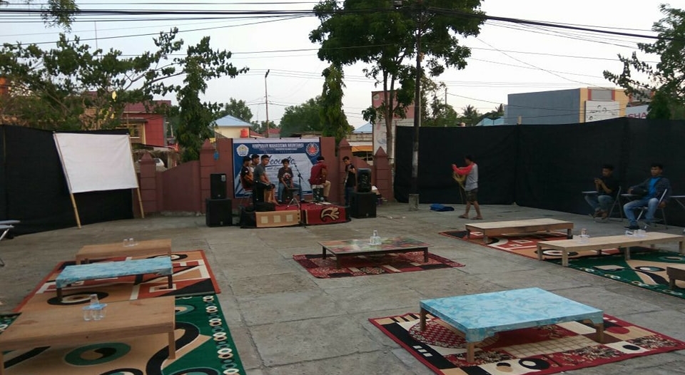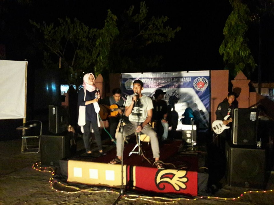 Dengan kreatifitas mahasiswa, halaman rektorat yang merupakan lahan parkir malam itu”disulap” menjadi cafe berkelas, makan sambil ditemani lantunan musik.