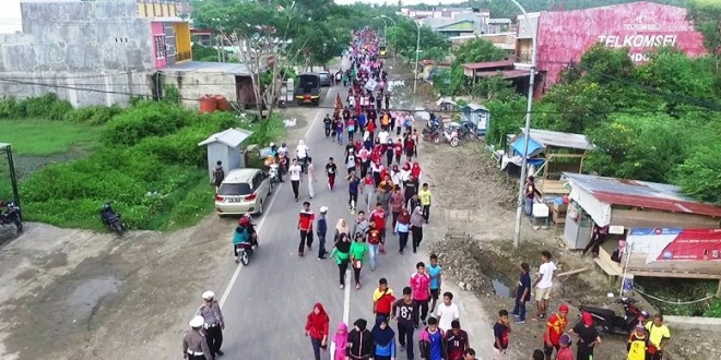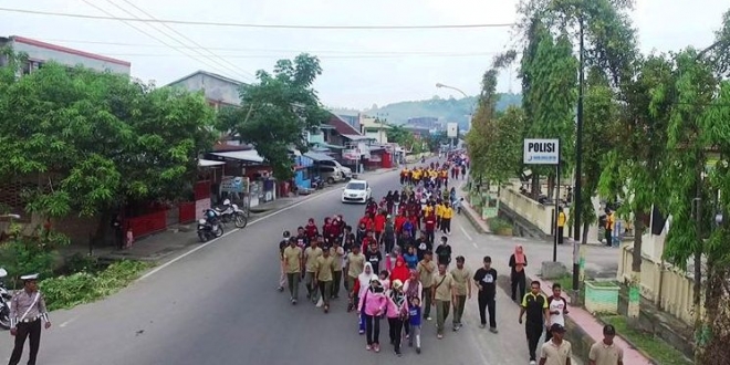 Ratusan peserta mengikuti jalan santai Dies Natalis Unsulbar IV, Jumat, 01/12/2017. ( Foto : Abdul Rais Husain )