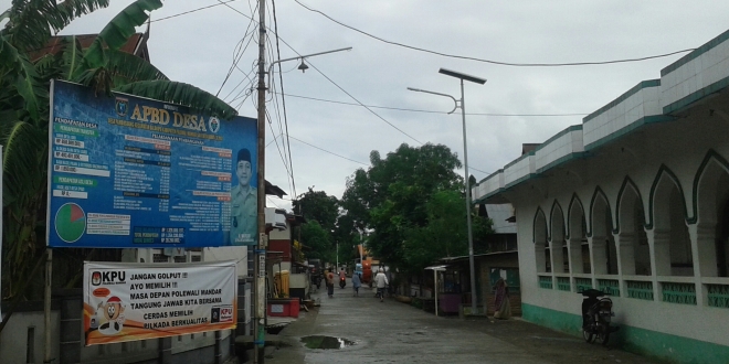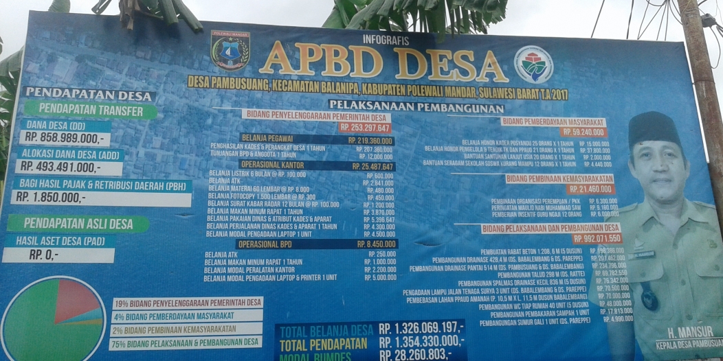 Baligo APBD Desa Tahun 2017 ini dipasang persis di depan Masjid Jami At – Taqwa Pambusuang, setiap warga Pambusuang yang melintas di sekitar masjid dapat melihat langsung rincian penggunaan dana desa.