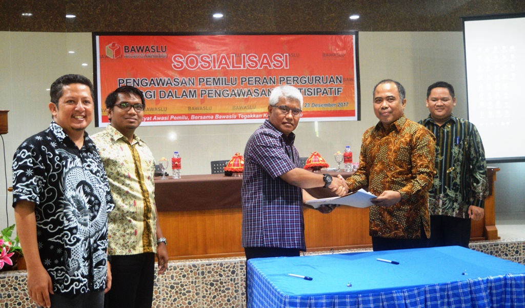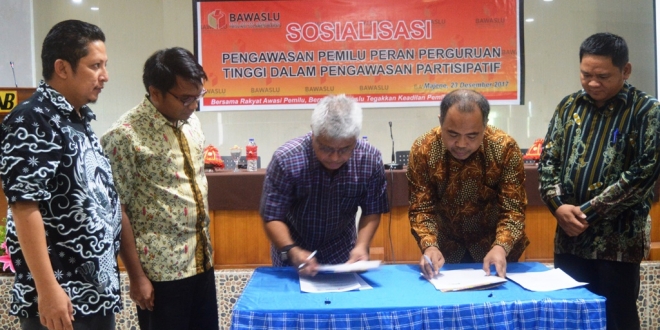 Penandantangan dilakukan ketua Bawaslu Sulbar, Sulfan Sulo, M.Si dan Rektor Unsulbar, Dr. Akhsan Djalaluddin, MS.