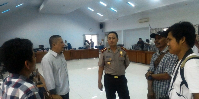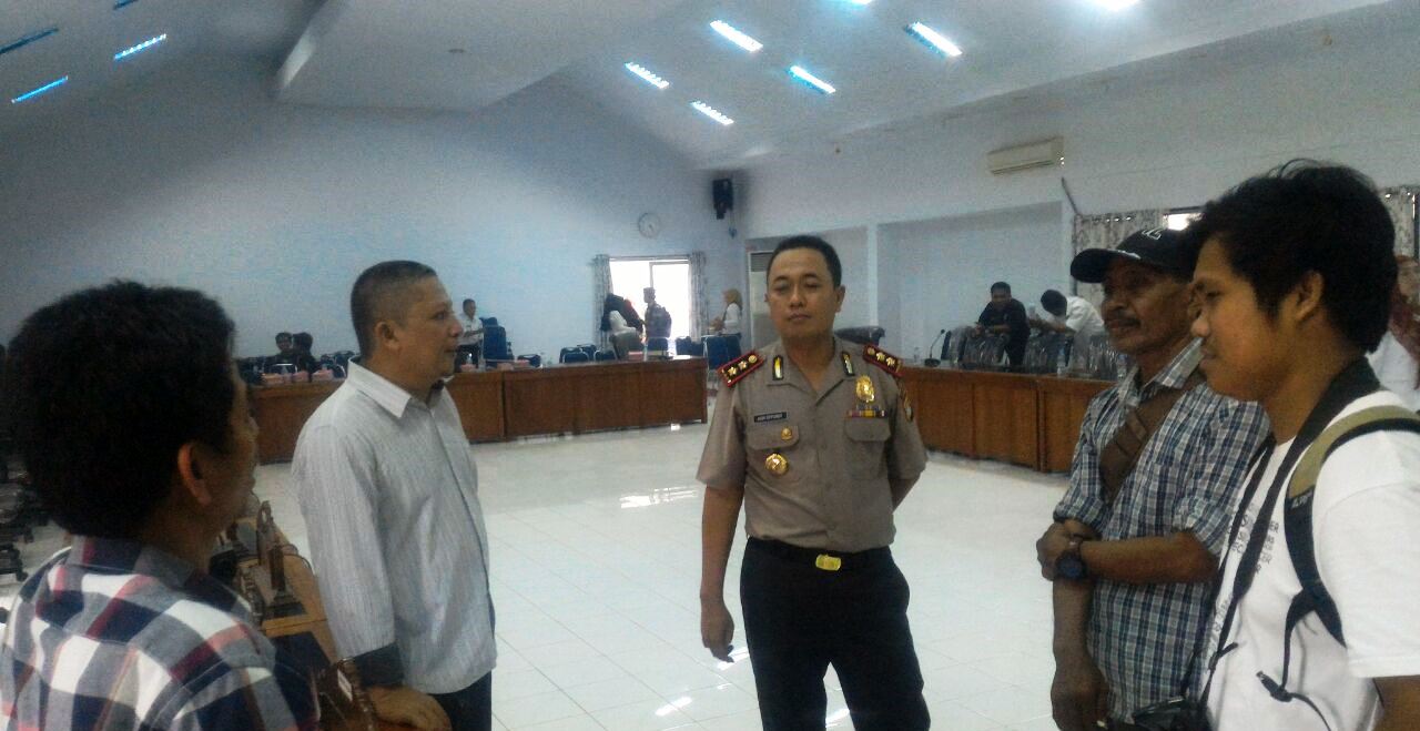 KAPOLRES MAJENE, AKBP Asri Effendi berdialog dengan Ketua PUSMIPOL Unsulbar, Farhanuddin, M.Si (kedua dari kiri ) di kantor DPRD Majene usai dialog publik kontroversi perda retribusi minuman beralkohol. ( foto – foto : Misbah Sabaruddin)