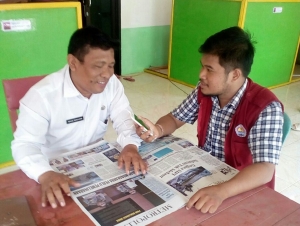 Kepala Desa Luyo saat di wawancarai oleh reporter Karakter Unsulbar