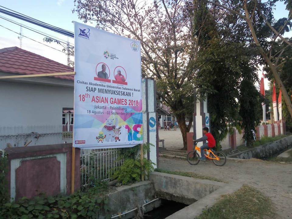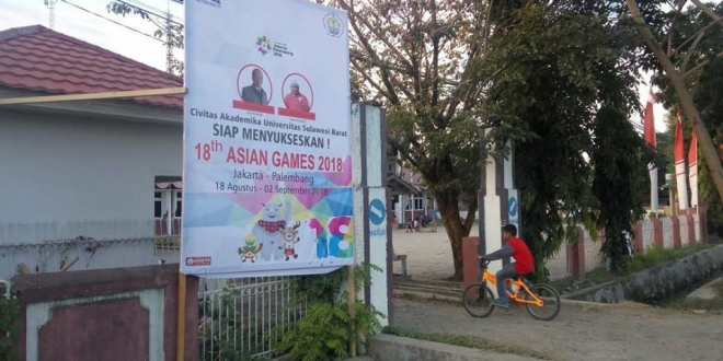 Bukan hanya di kota-kota besar, dukungan untuk menyukseskan pelaksaan pesta olahraga terbesar di Asia ini juga datang dari universitas negeri pertama di Sulawesi Barat (Sulbar), yakni Unsulbar.