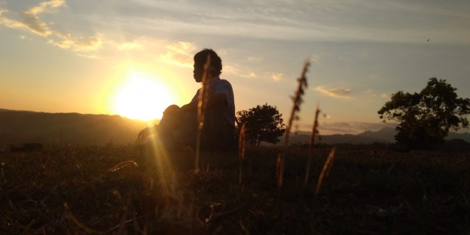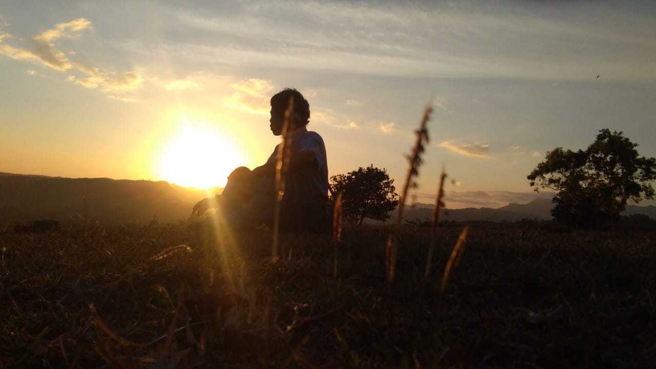 Gelap malam disebuah gubuk di bawah lampu yang redup, angin kian menerpa menyelinap disela-sela kayu bagai pencuri
