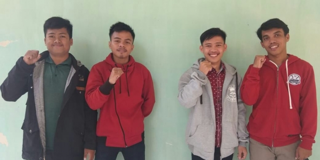 Foto: Dari kiri ke kanan, Irwan, Hasrul, Muslimin dan Abdillah Fitrah. keempat mahasiswa ini merupakan mahasiswa Prodi Pendidikan Fisika angkatan 2016. (Foto Karakter)