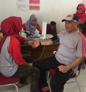 Rektor Akhsan ( kanan)  saat melakukan donor darah di acara dies natalis Unsulbar.