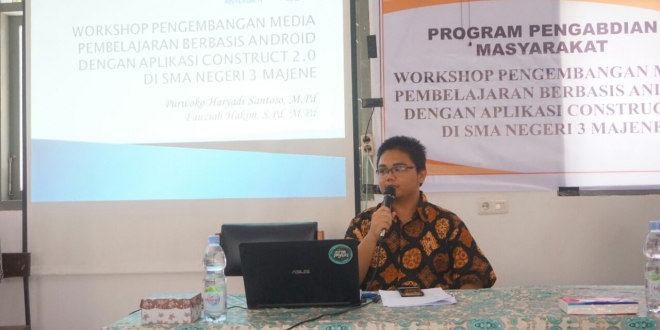 Ia mengenalkan kepada guru-guru berupa software Construct 2.0. Software ini dapat gunakan untuk mengembangkan media pembelajaran berbasis android.