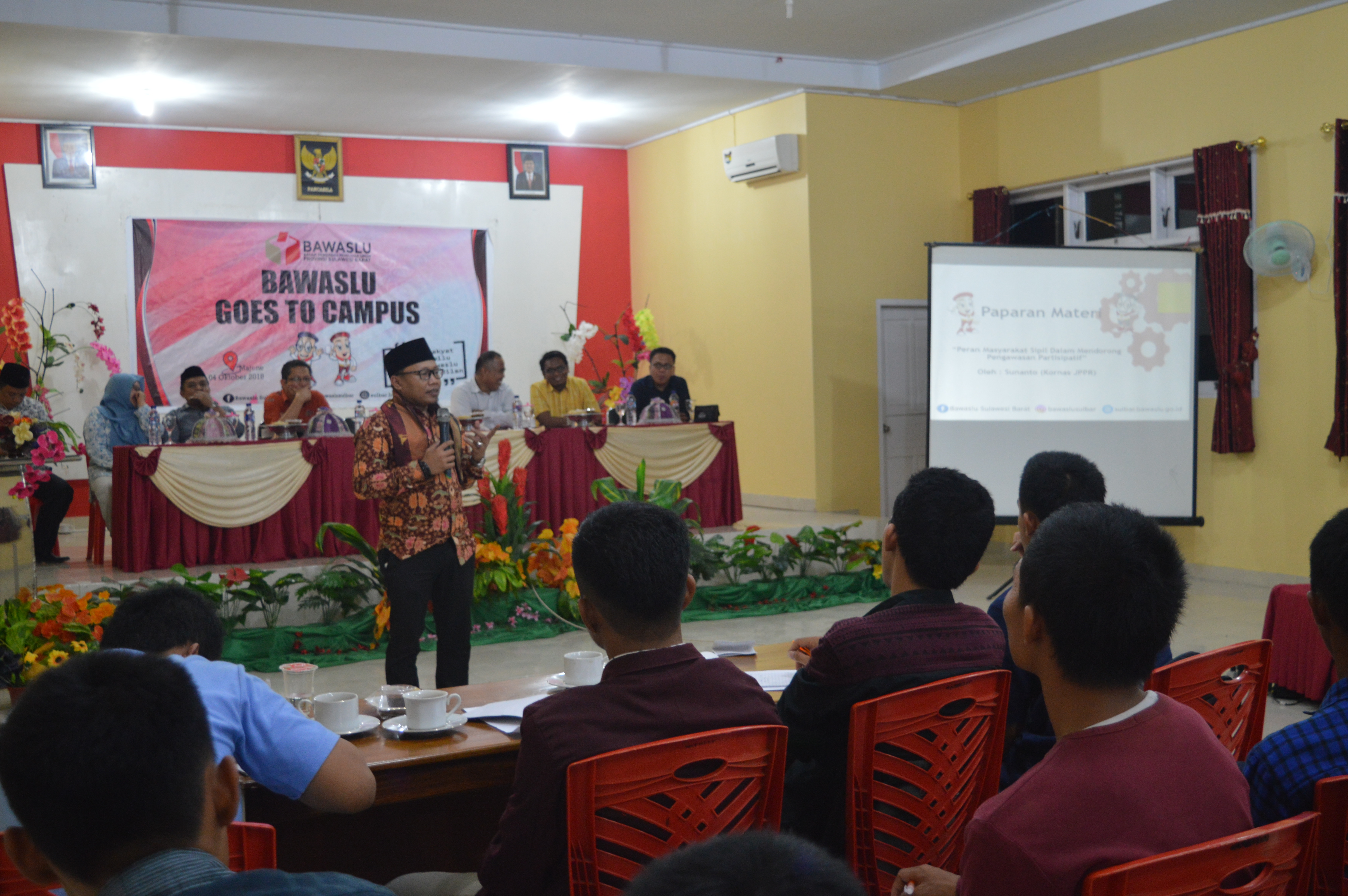Hal tersebut disampaikan dalam kegiatan Goes To Campus yang diselenggarakan oleh Bawaslu Sulbar, Kamis (04/10) di Wisma Yumari, Tulu, Majene.