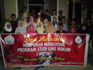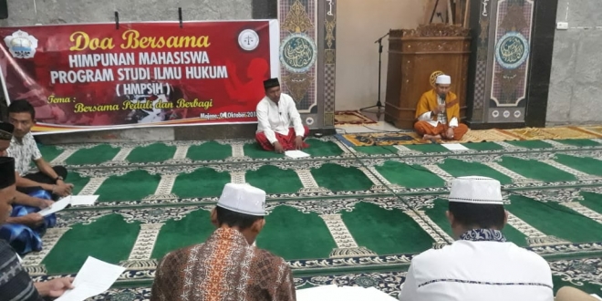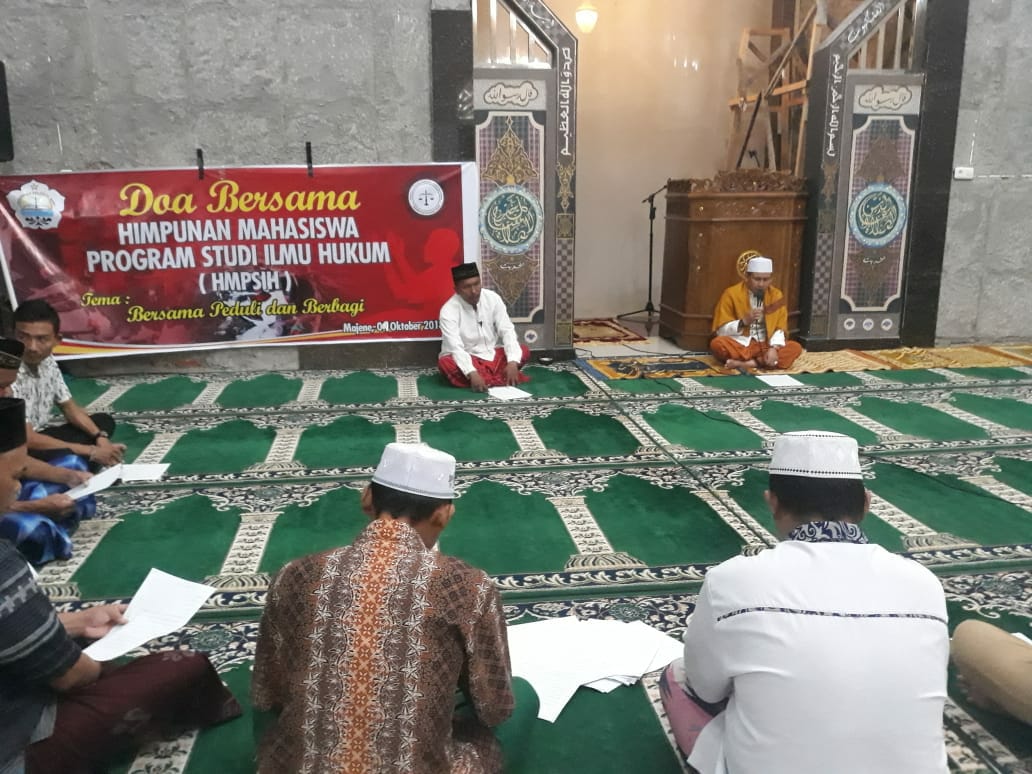 Mengusung tema “Bersama, Peduli Dan Berbagi Untuk Sulteng”, mahasiswa hukum melakukan doa bersama dengan sejumlah masyarakat lembang serta mahasiswa Unsulbar lintas lain.