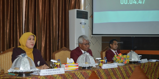 Tiga calon Rektor tersebut yakni, Dr.Ir.Akhsan Djalaluddin mantan Rektor Unsulbar, Prof. Mediaty, Se., M,si.,AK.,CA, dosen Fakultas Ekonomi dan Bisnis (FEB) Universitas Hasanuddin (Unhas), dan Dr. Muhammad Abdy, M.Si.,Ph.d, Dekan FMIPA Unsulbar.