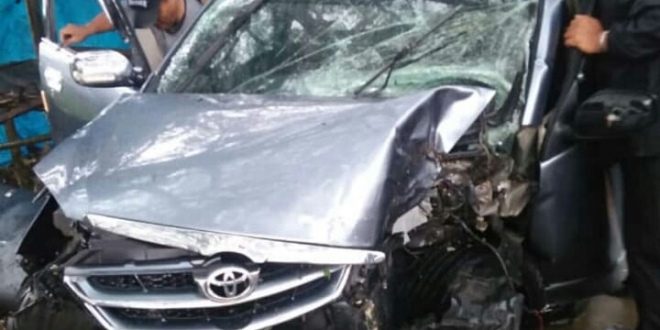 Foto: Kondisi Mobil rombongan mahasiswa Pendidikan Biologi yang mengalami kecelakaan, Minggu, (21/04/2019) (Foto: Wawan).