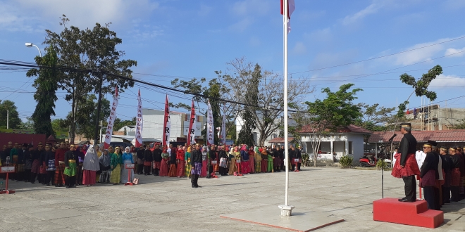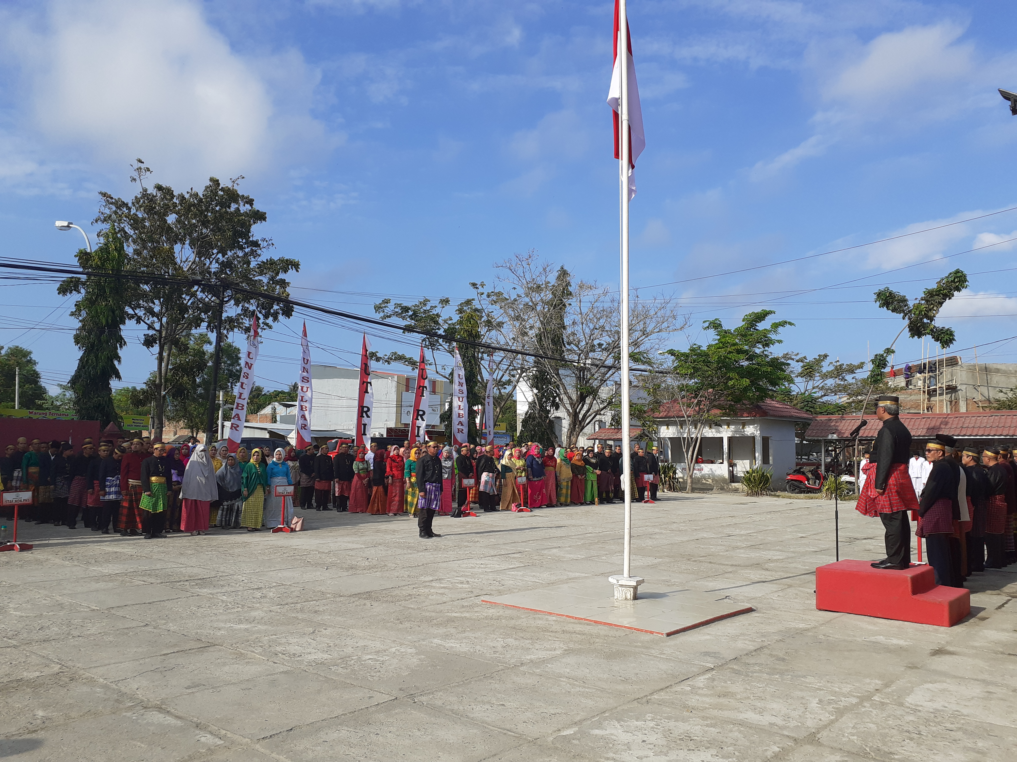Karakterunsulbar.com- Upacara Peringatan Kemerdekaan Republik Indonesia ke-74 di Universitas Sulawesi Barat (Unsulbar) diwarnai dengan penampilan baju adat Indonesia.
