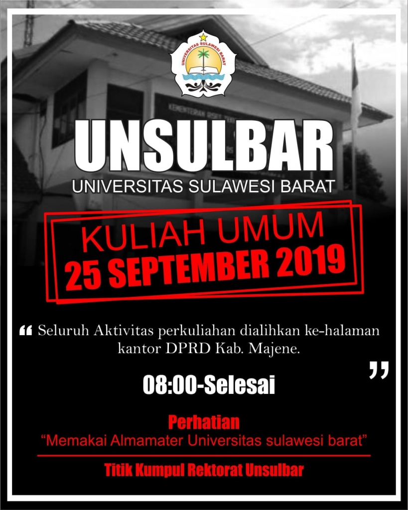 Karakterunsulbar.com- Rektor Universitas sulawesi Barat (Unsulbar), Dr. Akhsan Djalaluddin mendukung aksi kuliah umum mahasiswa Unsulabar di jalan depan Kantor Dewan Perwakilan Rakyat Daerah (DPRD) Majene pada 25 September besok.