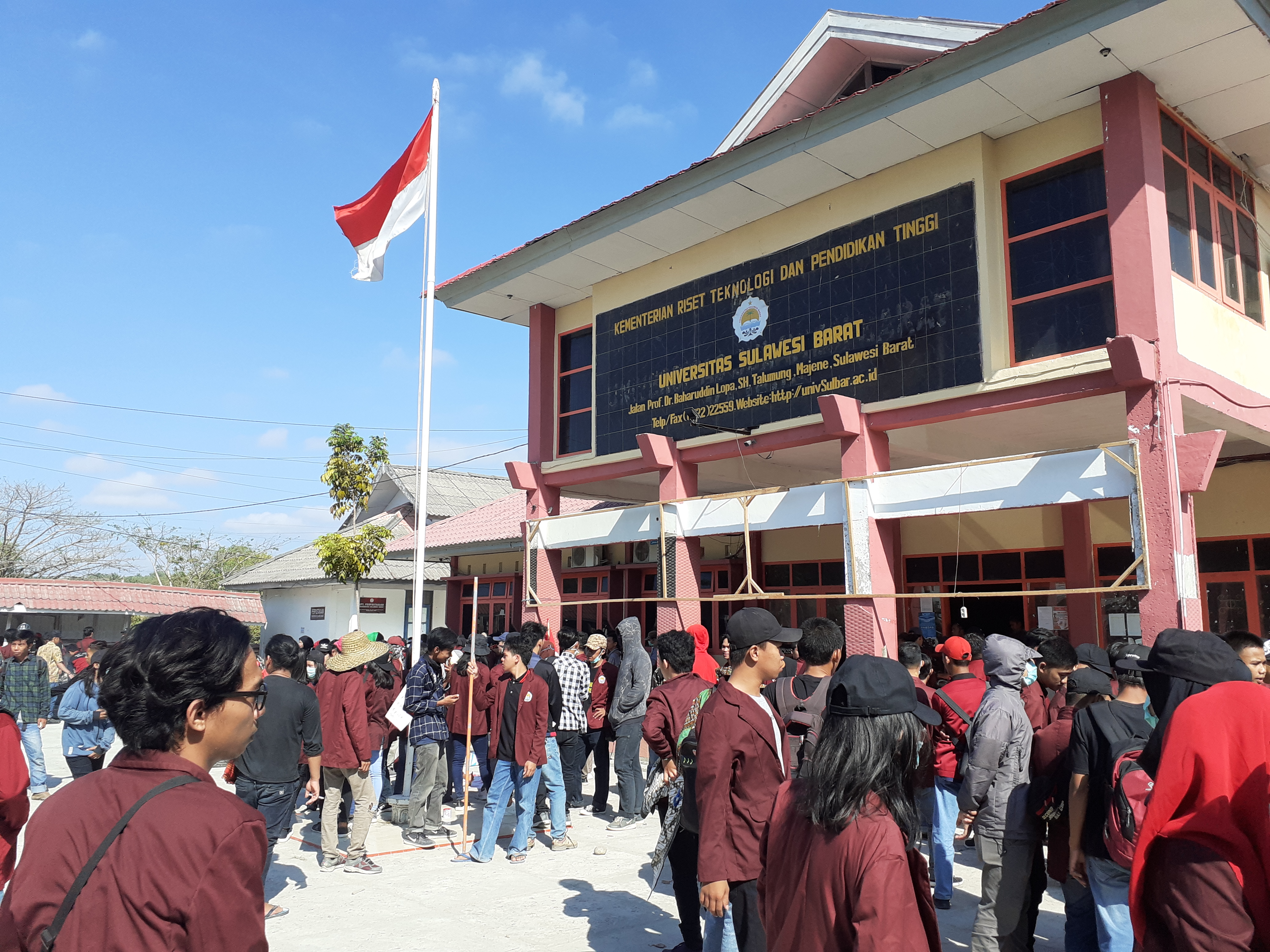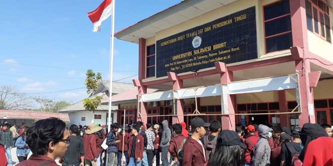 Karakterunsulbar.com- Mahasiswa Universitas Sulawesi Barat (Unsulbar) padati gedung Rektorat Unsulbar sejak pukul 07.00 pagi tadi. (25/09/2019)