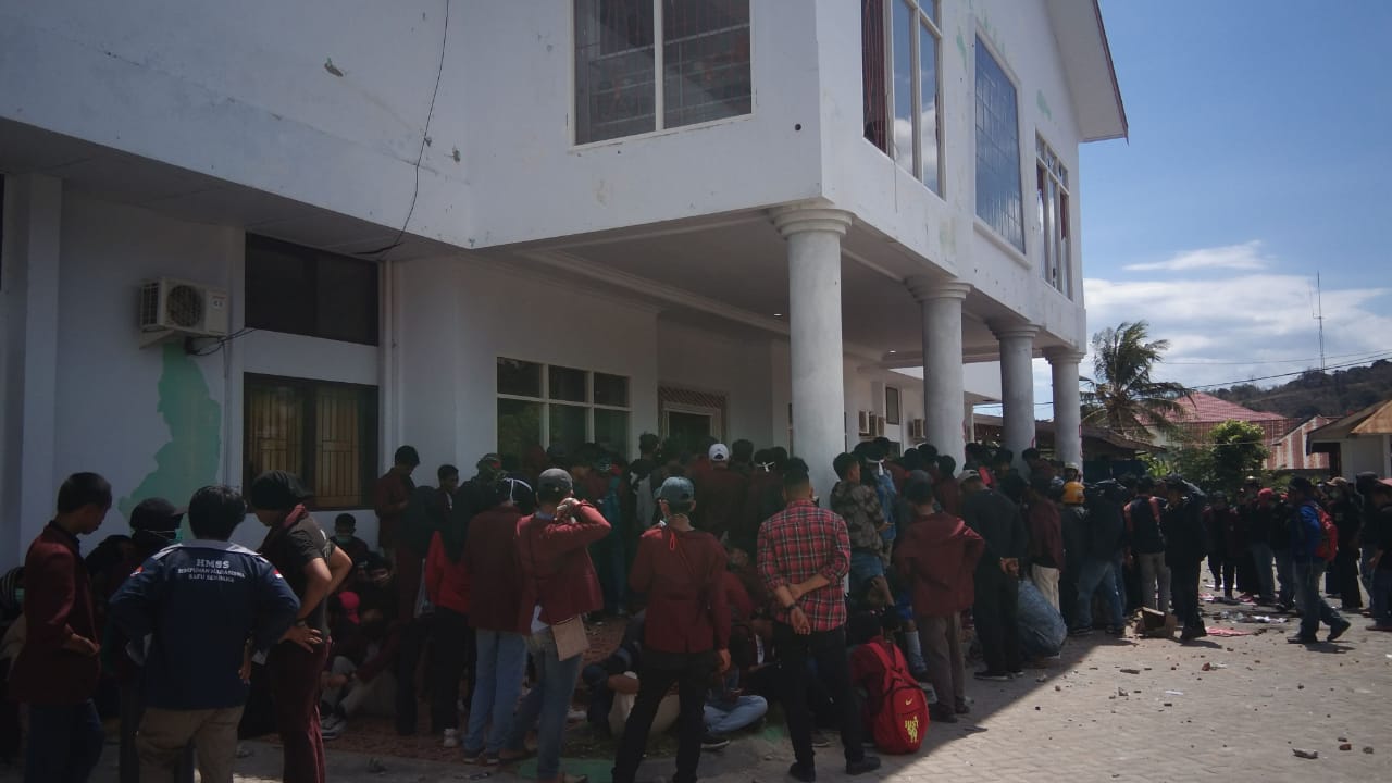 Karakterunsulbar.com- Aliansi Mahasiswa Aksi Majene berhasil menduduki kantor di DPRD Majene, Rabu (25/9/2019) 12.53 Wita. Setelah beberapa jam melakukan aksi, bahkan sampai terjadi bentrok antara kepolisian dan massa.