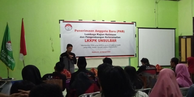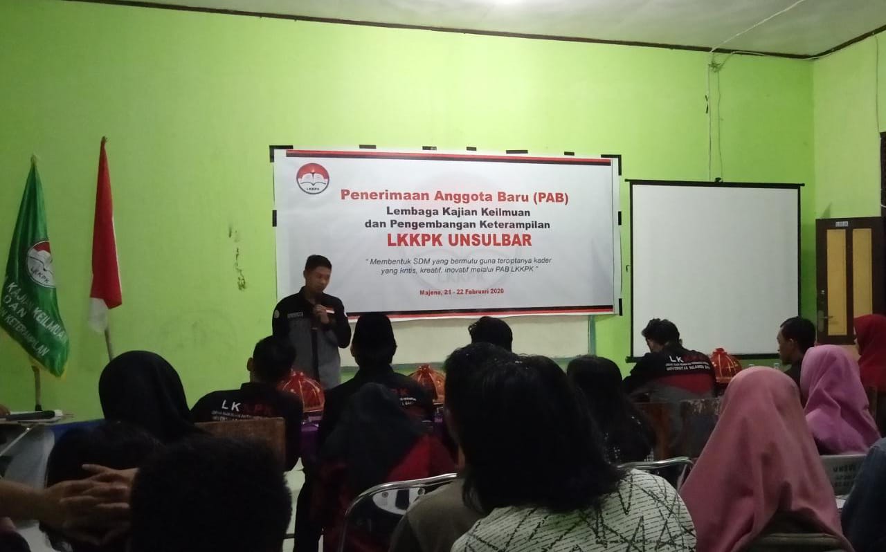 Karakterunsulbar.com- Lembaga Kajian Keilmuan dan Pengembangan Keterampilan (LKKPK), Universitas Sulawesi Barat (Unsulbar) gelar Penerimaan Anggota Baru (PAB), Jumat-Sabtu, 21-22 Februari 2020 di Aula SMAN 3 Majene.
