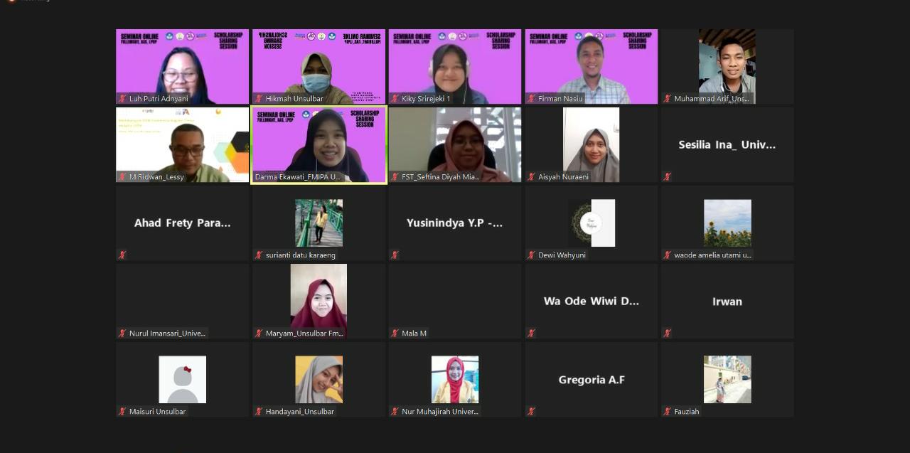 Foto : Room zoom meeting seminar nasional beasiswa FMIPA