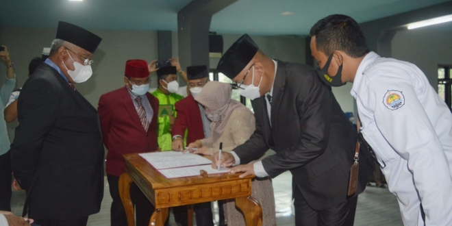 Foto : Penandatangan SK WR I (Zulfajri Basri Hasanuddin) dengan Dekan FT (Hafsah Nirwana)