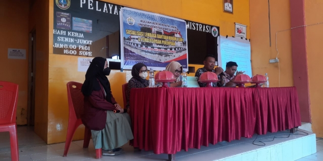 Narasumber sosilasisasi terdiri Koordinator Prodi Ilmu Hukum Unsulbar Asrullah, S.H., M.H, dan beberapa dosen Prodi Ilmu Hukum yakni Sulaeman, S.H., M.H, Ika Novitasari, S.H., M.H, Andi Dewi Pratiwi, S.H., M.H.