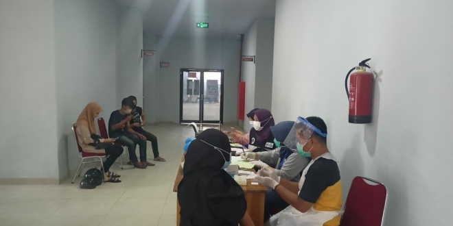 Foto : suasana vaksinasi Covid-19 di Lab Terpadu Unsulbar (Sumber: Humans Unsulbar)