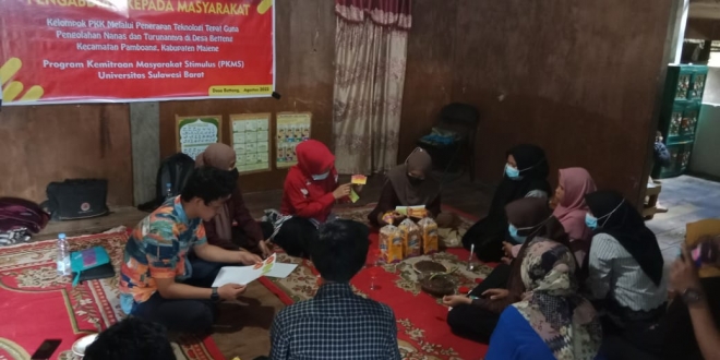 Karakterunsulbar.com – Dosen Universitas Sulawesi Barat (Unsulbar) yang tergabung dalam tim Program Kemitraan Masyarakat Stimulus (PKMS) lakukan Pelatihan Pengelolaan Nanas di Desa Betteng, Kecamatan Pamboang pada Sabtu, 27 Agustus 2022.