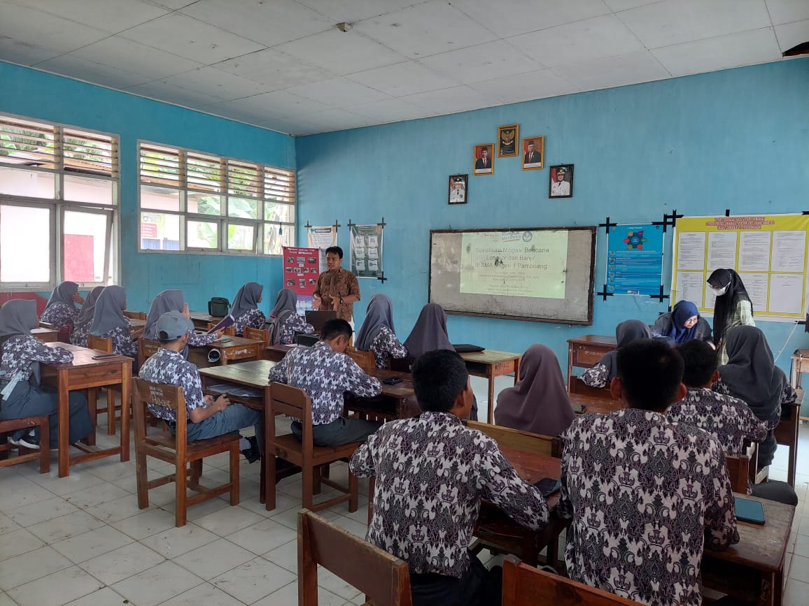 “Sosialisasi ini bertujuan untuk memberikan pengetahuan dasar kepada siswa terkait penyebab terjadinya longsor dan banjir, serta penanggulangannya,” tuturnya dihadapan peserta sosialisasi.