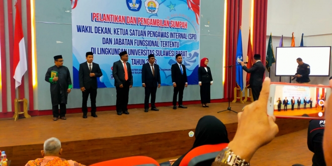 Sejumlah pejabat baru Unsulbar yang dilantik Selasa, 4 Juli di aula Ruang Theahter Kampus Padha-Padhang, kelurahan Tande Timur itu antara lain; Wakil Dekan I FISIP Muhammad, dua wakil dekan dari Fakultas Teknik, Nur Adylah dan Sugiarto Cokrowibowo, Ketua Satuan Pengawasan Internal (SPI) Arifhan Ady serta Pranata Keuangan Anggaran Pendapatan dan Belanja, Ansharullah.