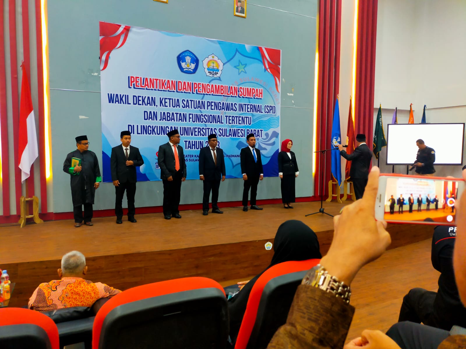 Keterangan Foto : Suasana Pelantikan Wakil Dekan, Ketua SPI dan Pejabat Fungsional di Lingkungan Universitas Sulawesi Barat (Unsulbar), Selasa, (4/7) di Ruang Teater Kampus Padha-Padhang. (Foto : Red)