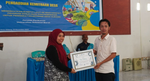 Kepala Desa Ulidang, Suradi menyampaikan apresiasi atas kegiatan Pengabdian Kemitraan Desa Universitas Sulawesi Barat yang mengenalkan masyarakat daerah pesisir terhadap budidaya rumput laut.