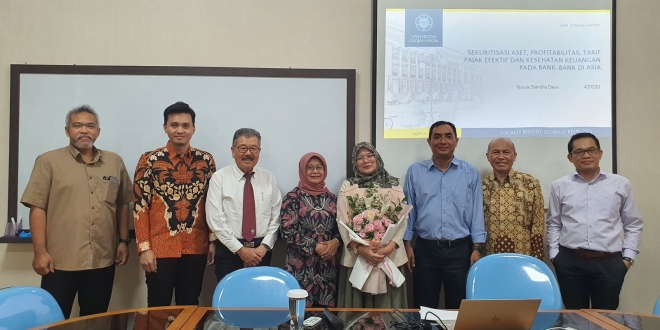 Dalam ujian tertutup tersebut, Novia berhasil mempertahankan disertasinya berjudul “Sekuritisasi Aset, Profitabilitas, Tarif Pajak Efektif dan Kesehatan Keuangan Pada Bank – Bank di Asia”.