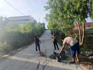 Para pengemudi tranportasi itu kemudian berinisiatif untuk bersama – sama membenahi sejumlah titik jalan beton menuju kampus yang rusak pada Senin, 12 Mei 2025.