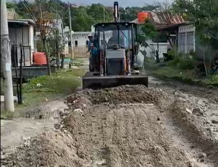 Perbaikan jalan di samping rektorat Unsulbar, jalur ini menuju kampus Padha-Padhang melewati kompleks perumahan. Alat berat meratakan material timbunan swadaya civitas akademika Unsulbar. (Foto : Ist )