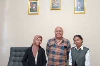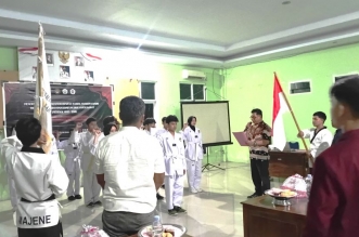 Kepala Biro Akademik dan Kemahasiswaan, Herli, M.Pd (ketiga dari kanan) pada acara Pengukuhan dan Penganugerahan Sabuk Anggota Baru Periode 2025 – 2026 UKM Taekwondo Unsulbar, 14/06/2025. (Foto : ...