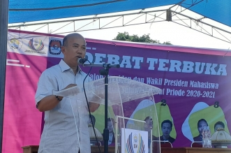 Foto: Kepala Biro Akademik dan Kemahasiswaan (Abful Latif Dollah) saat membrri sambutan di Debat Terbuka Capres-Wapres BEM-U Unsulbar Karakterunsulbar.com- Debat terbuka pasangan calon Presiden dan Wakil Presiden Badan ...