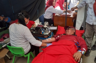 Foto: Rektor Akhsan saat donor darah di Dies Natalis VI Unsulbar Karakterunsulbar.com- Sebanyak 26 kantong darah dihasilkan di Universitas Sulawesi Barat (Unsulbar) Social Action 2019 oleh Korps Sukarela ...