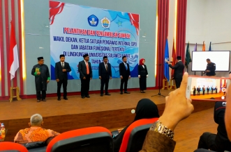 Keterangan Foto : Suasana Pelantikan Wakil Dekan, Ketua SPI dan Pejabat Fungsional di Lingkungan Universitas Sulawesi Barat (Unsulbar), Selasa, (4/7) di Ruang Teater Kampus Padha-Padhang. (Foto : Red) ...