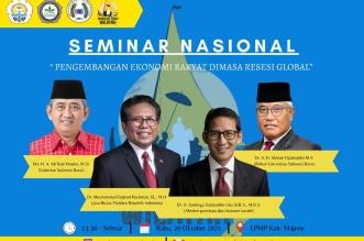 Foto: Pamflet Seminar Nasional “Pengembangan Ekonomi Rakyat Dimasa Resesi Global” Karakterunsulbar.com – Mahasiswa Universitas Sulawesi Barat (Unsulbar) akan menghadirkan Menteri Pariwisata dan Ekonomi Kreatif (Menparekraf), Dr. H. Sandiaga ...